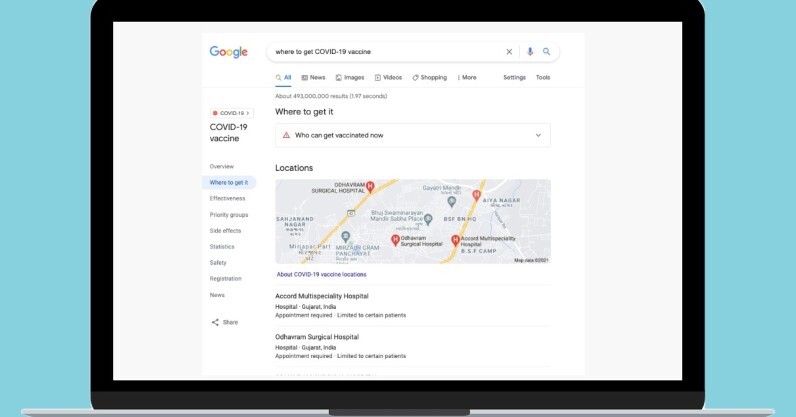 - How to use Google search to find the nearest vaccination center in India